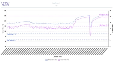 Superior Data Integrity: Featuring "store-and-forward" technology, the Vega Vayu 4G GSM Temperature and Humidity Data Logger can cache up to 17,000 readings locally if a network signal is lost, automatically uploading the data once connectivity is restored to prevent any gaps in the audit trail.