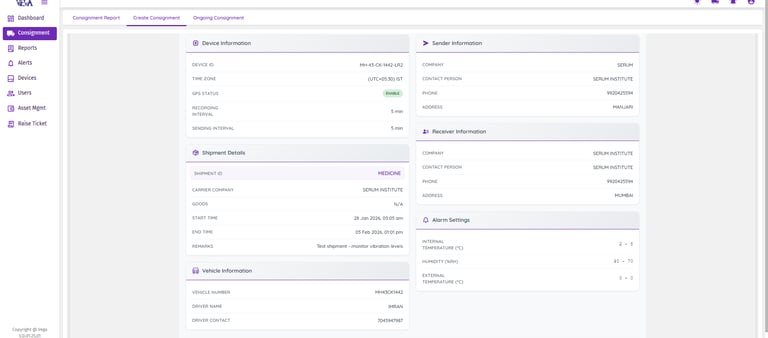 Shipment Creation: Quickly generate and configure new consignments, seamlessly assigning specific temperature loggers to individual transport vehicles or packages.