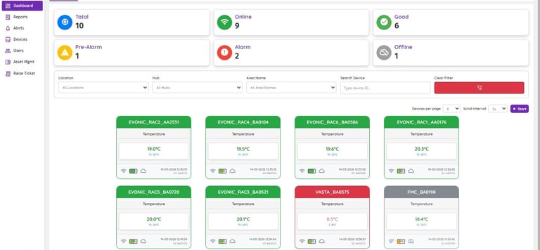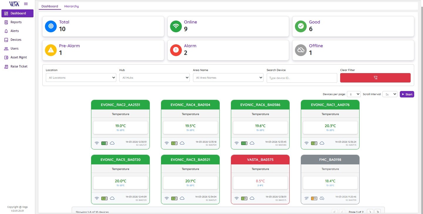 Advanced Cloud Monitoring Platform: Integrated with the Vega Cloud Platform enabling real-time monitoring through secure web and mobile dashboards. Supports centralized data visualization, automated compliance reports, and secure access with authentication and audit trails.