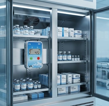 Everyday doctors rely on small refrigerators to keep routine medicines safe for children and adults. If the power goes out, these medicines can quickly become useless. The Vega Vayu 4G GSM acts as a reliable WHO approved temperature data logger, sending a quick text message to the doctor if the fridge stops working, ensuring every patient gets a safe, effective shot.