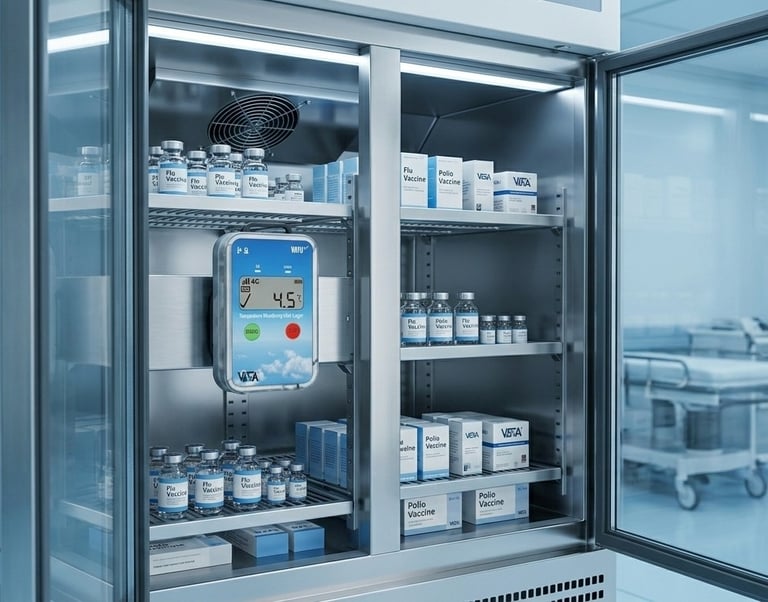 Keeping baby vaccines safe in a busy clinic fridge is hard. The Vega Vayu 4G GSM Temperature and Humidity Data Logger sits on the shelf, sounding an alarm on the doctor's phone if the fridge door is left open, ensuring every child gets a highly effective shot.